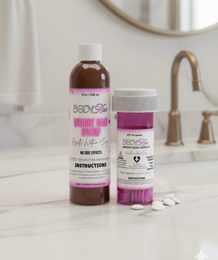 This bundles includes 1 bottle of both our Weight Gain Capsules & our Weight Gain Syrup.