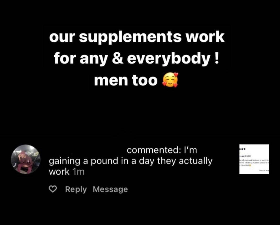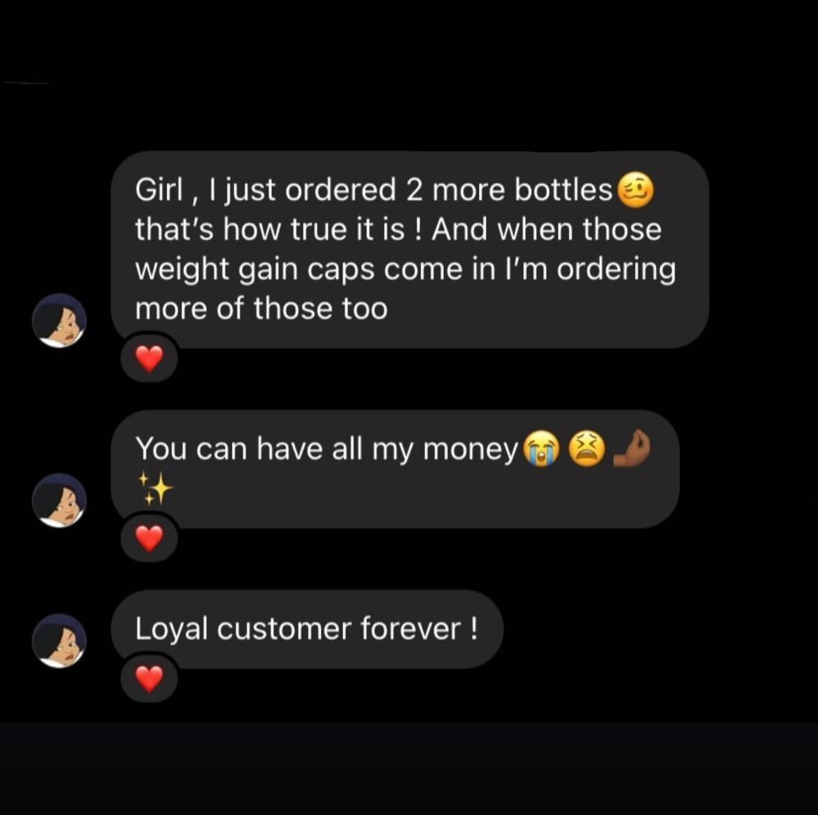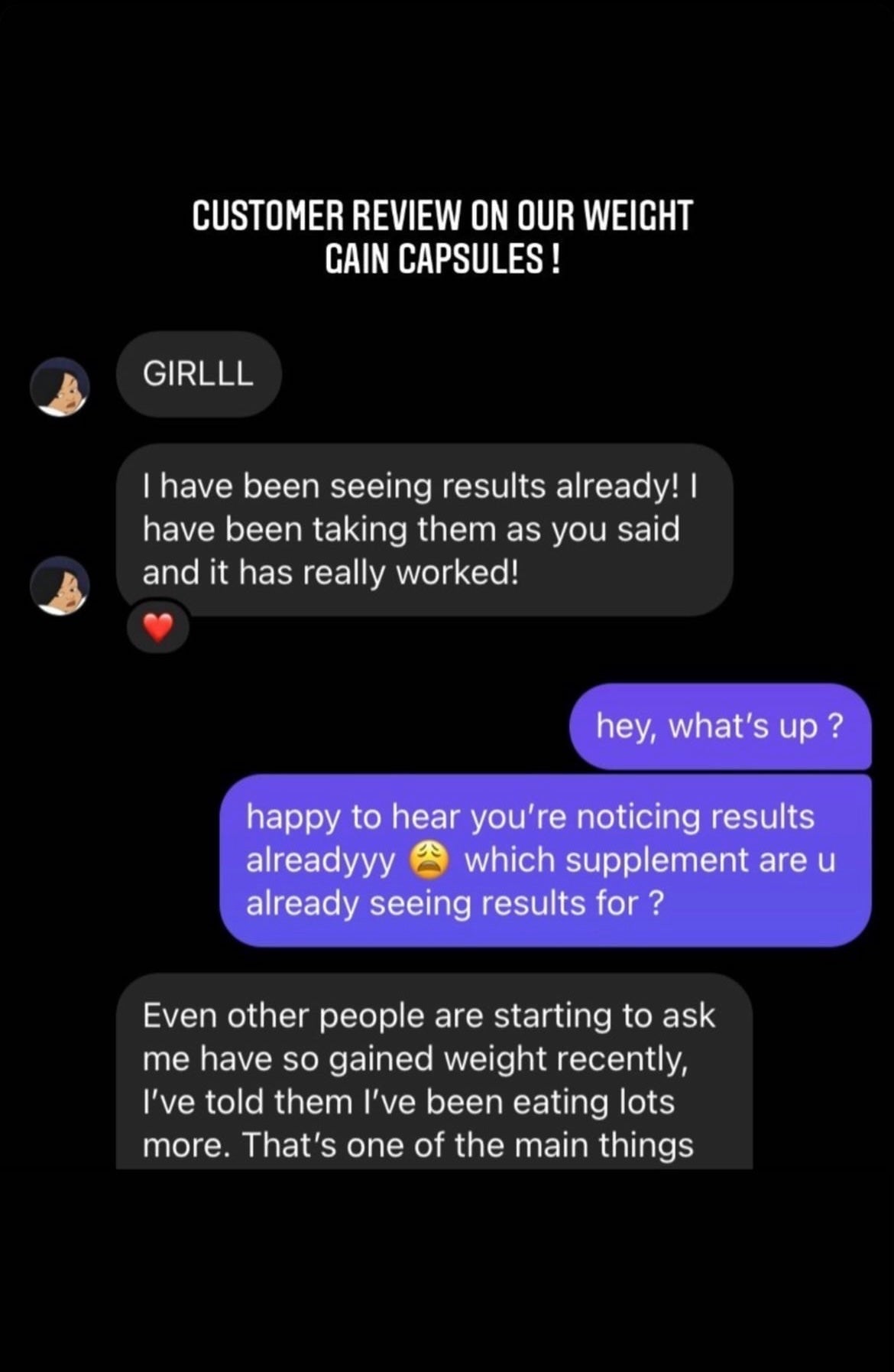 Our Weight Gain Capsules is a great way to start & speed up your weight gain journey! These capsules are best for ones who have a fast metabolism which causes them to struggle when it comes to gaining weight. These capsules help slow down your metabolism increasing your appetite helping you eat the amount of foods needed to gain weight. These capsules work very fast! You’ll start seeing results with a weight scale within 5-7 days & visible results with 7-14 days. Expect to gain around 3-5 pounds weekly. This supplement is safe for both men and women. We do NOT recommend one who is pregnant, who breast feeds or one who is the age below 10 to consume these capsules.